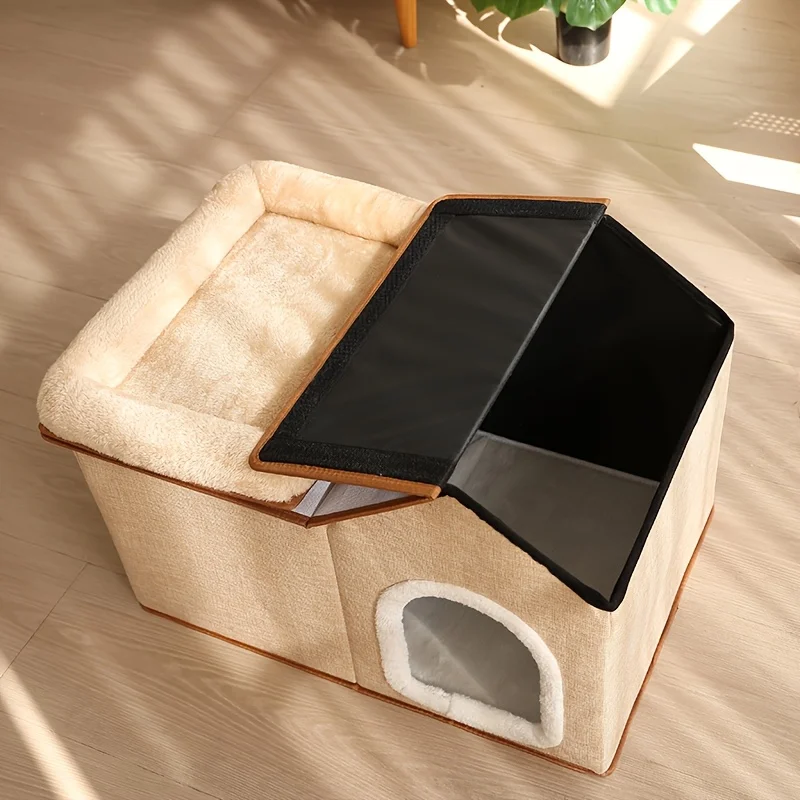 2-in-1 Cat House with Removable Bed - Large All-Season Warm Pet Villa for Indoor Outdoor Use, Cozy Durable Cat Furniture