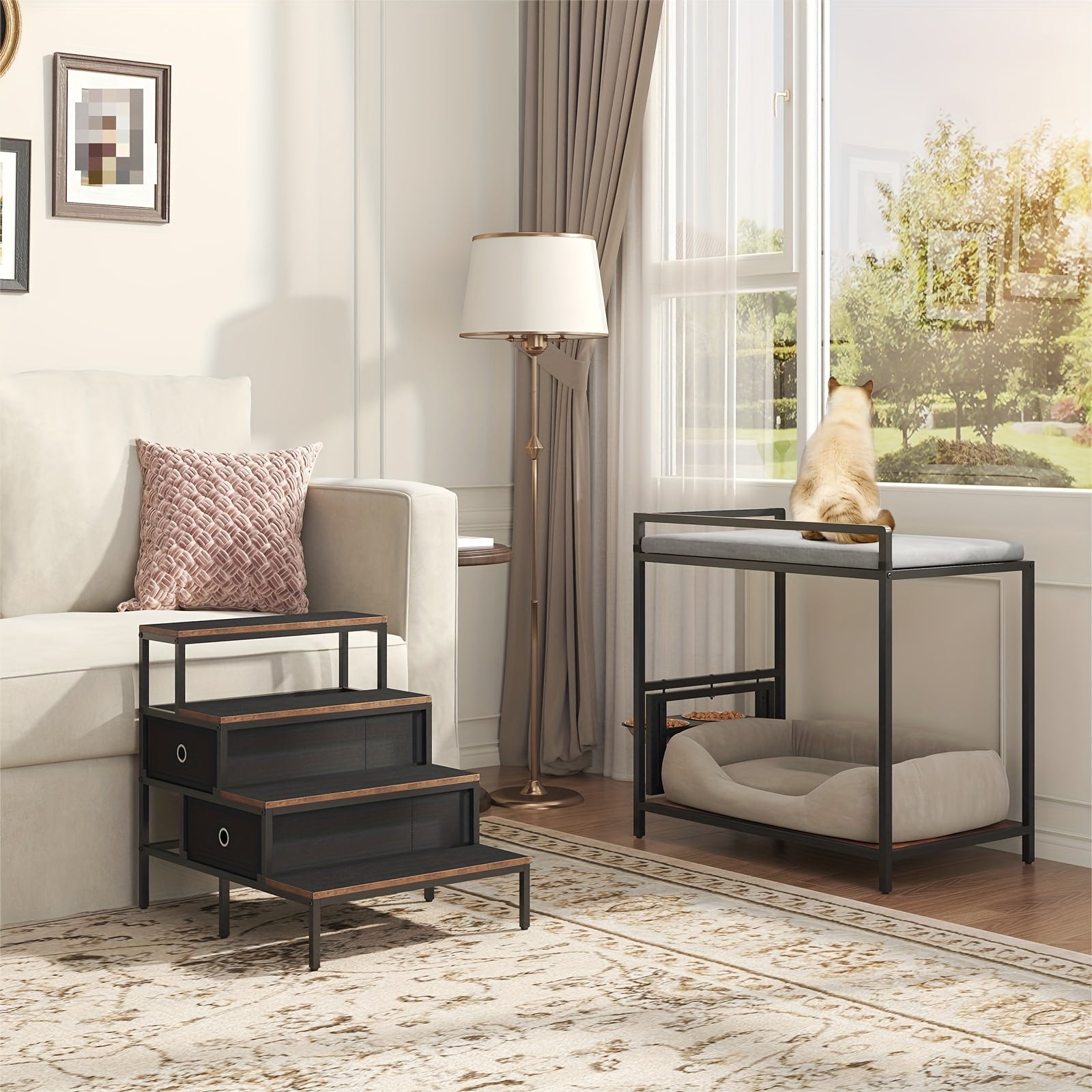 Give your furry friend a safe lift with the 4-Step Pet Tree House With Stairs And Elevated Feeder.