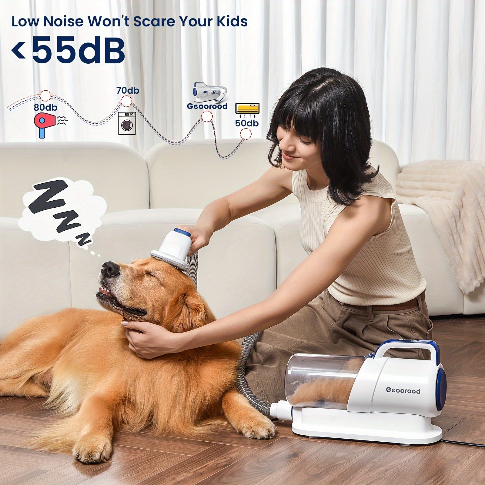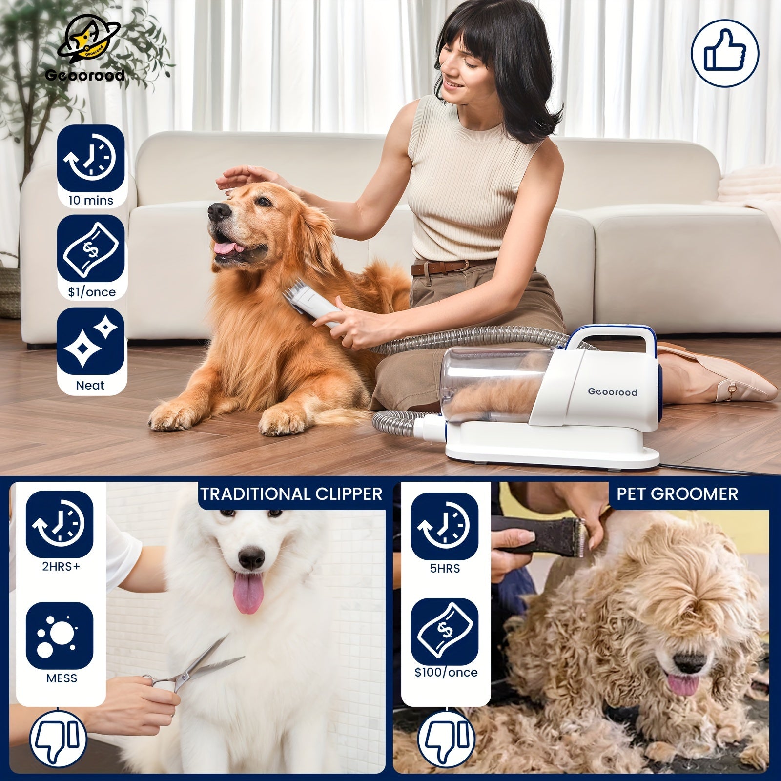 Transform your pet care routine with the 5-in-1 Dog Grooming Vacuum Kit by GEOOROOD PET, a revolutionary solution designed for dog lovers seeking efficiency and ease in grooming. This all-in-one kit includes a grooming brush, electric clipper, flat suction rod, and a cleaning brush—ensuring your furry friend looks their best while minimizing mess.