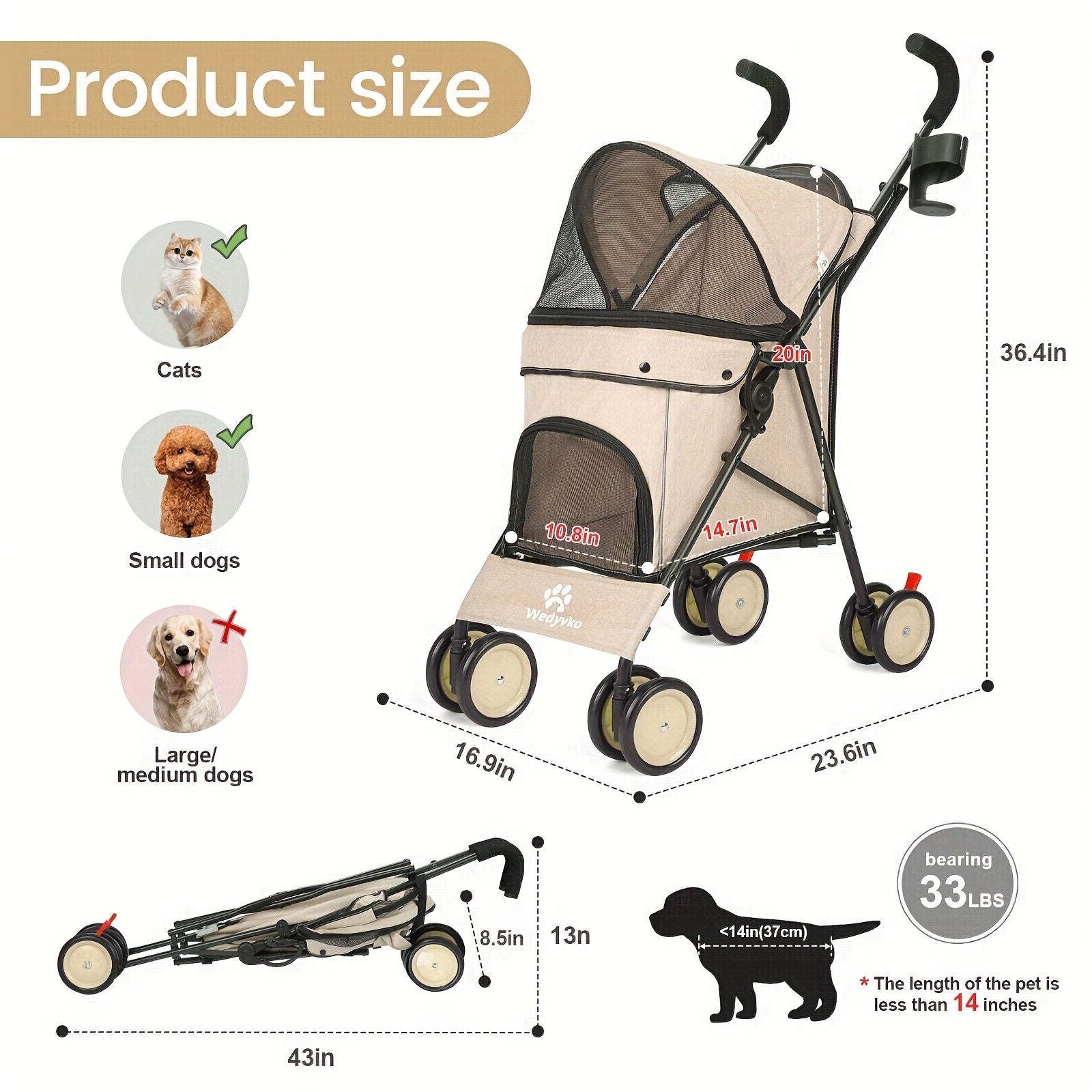 - Designed for cats and dogs with easy folding, smooth-rolling wheels, adjustable handle height, and a lightweight frame for your effortless transitions between outings.