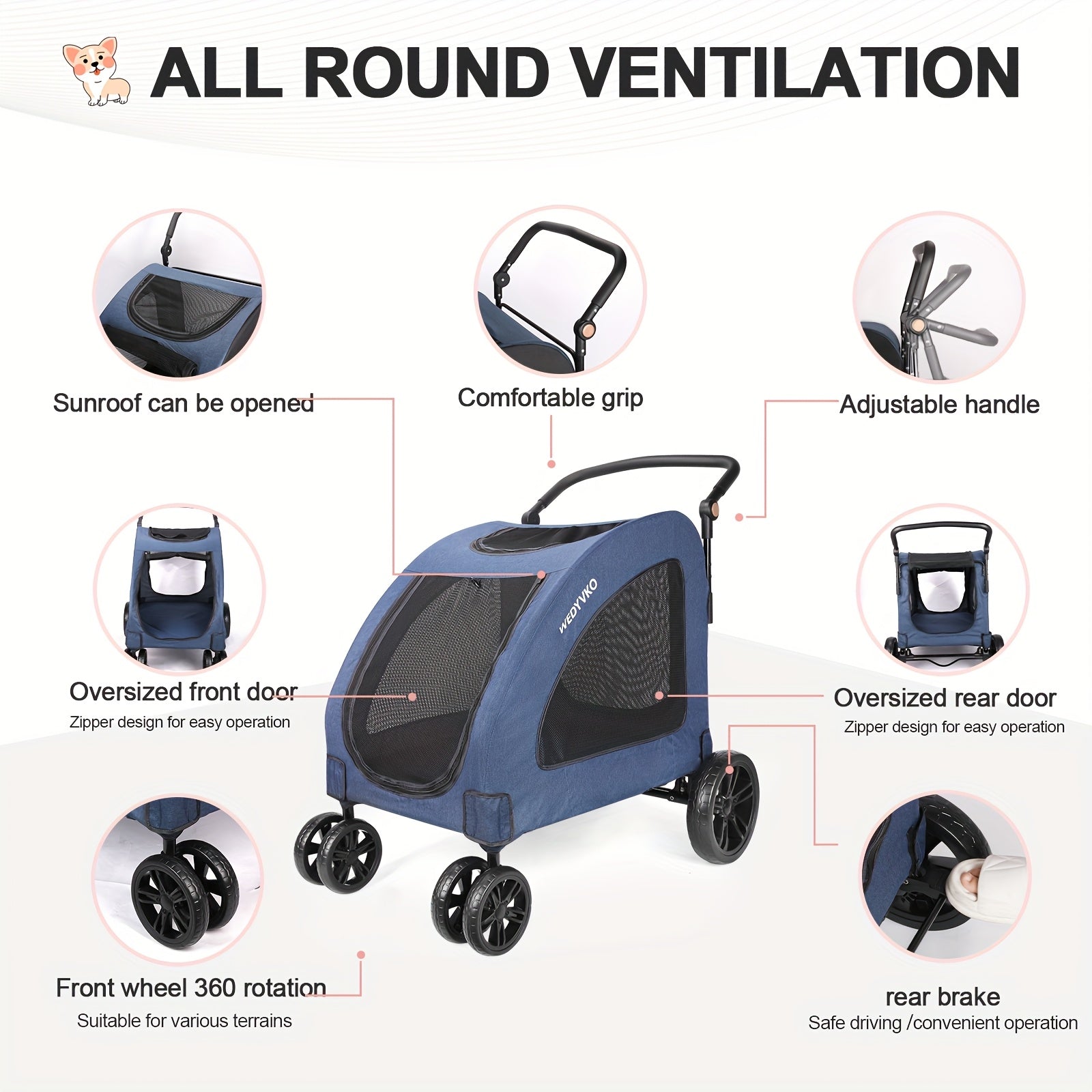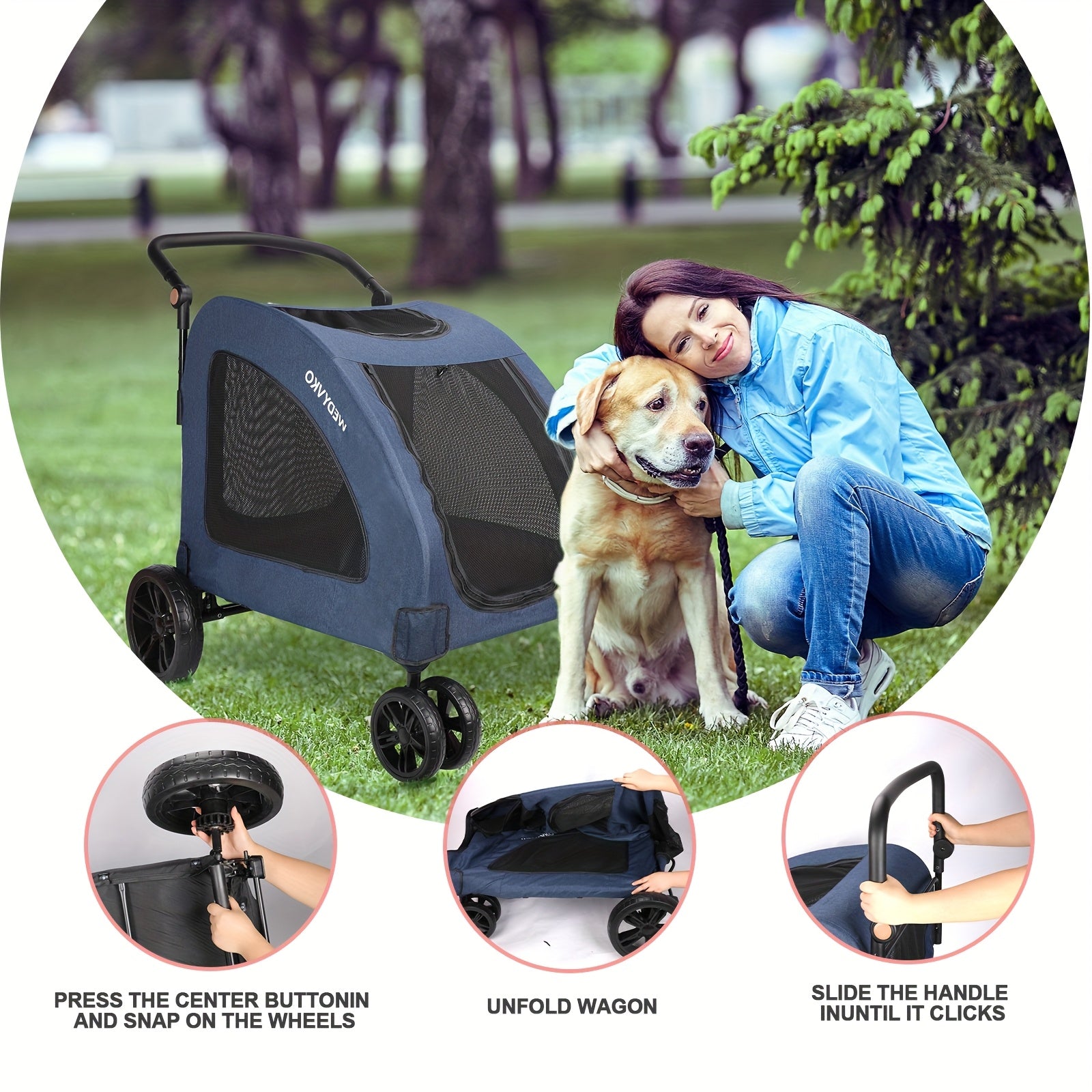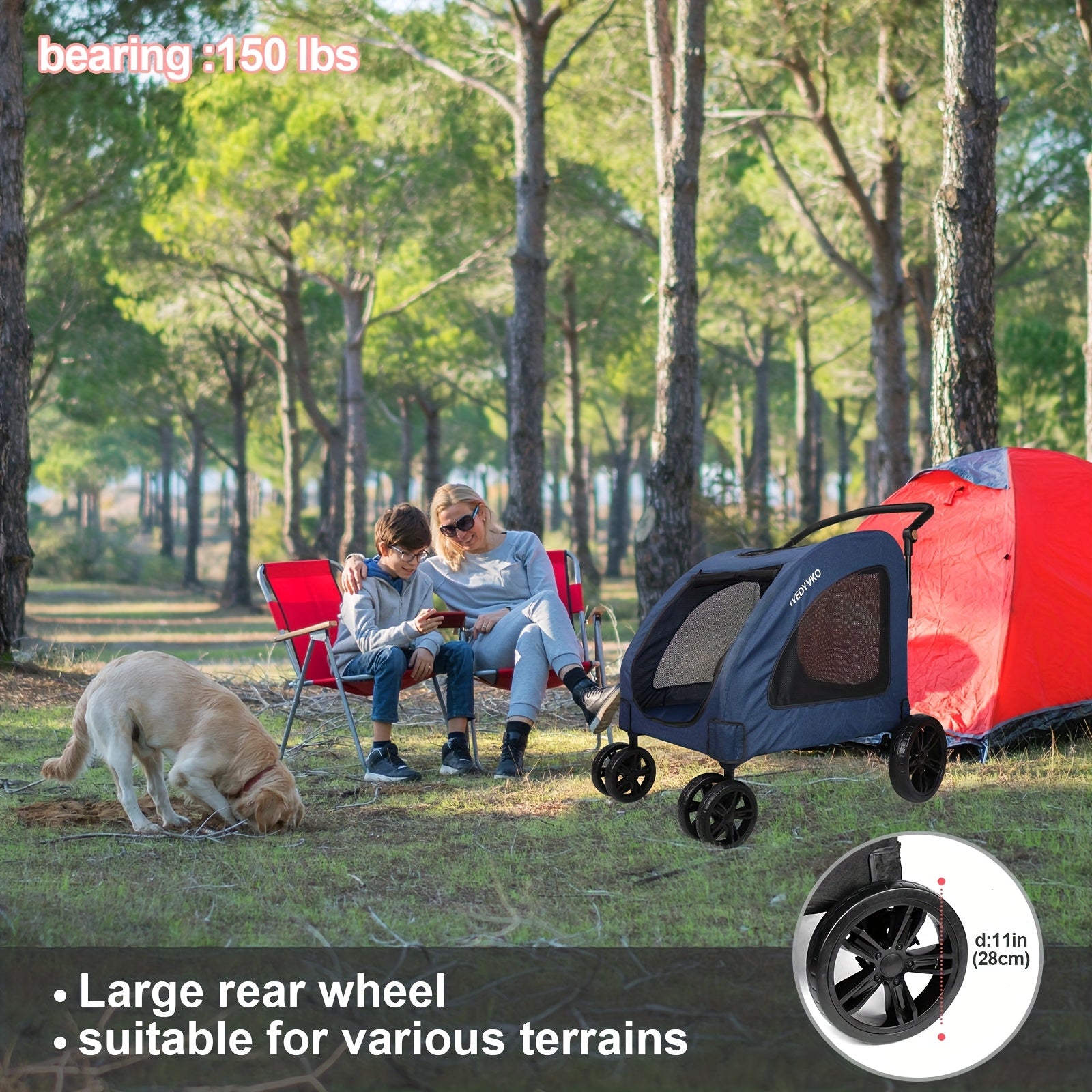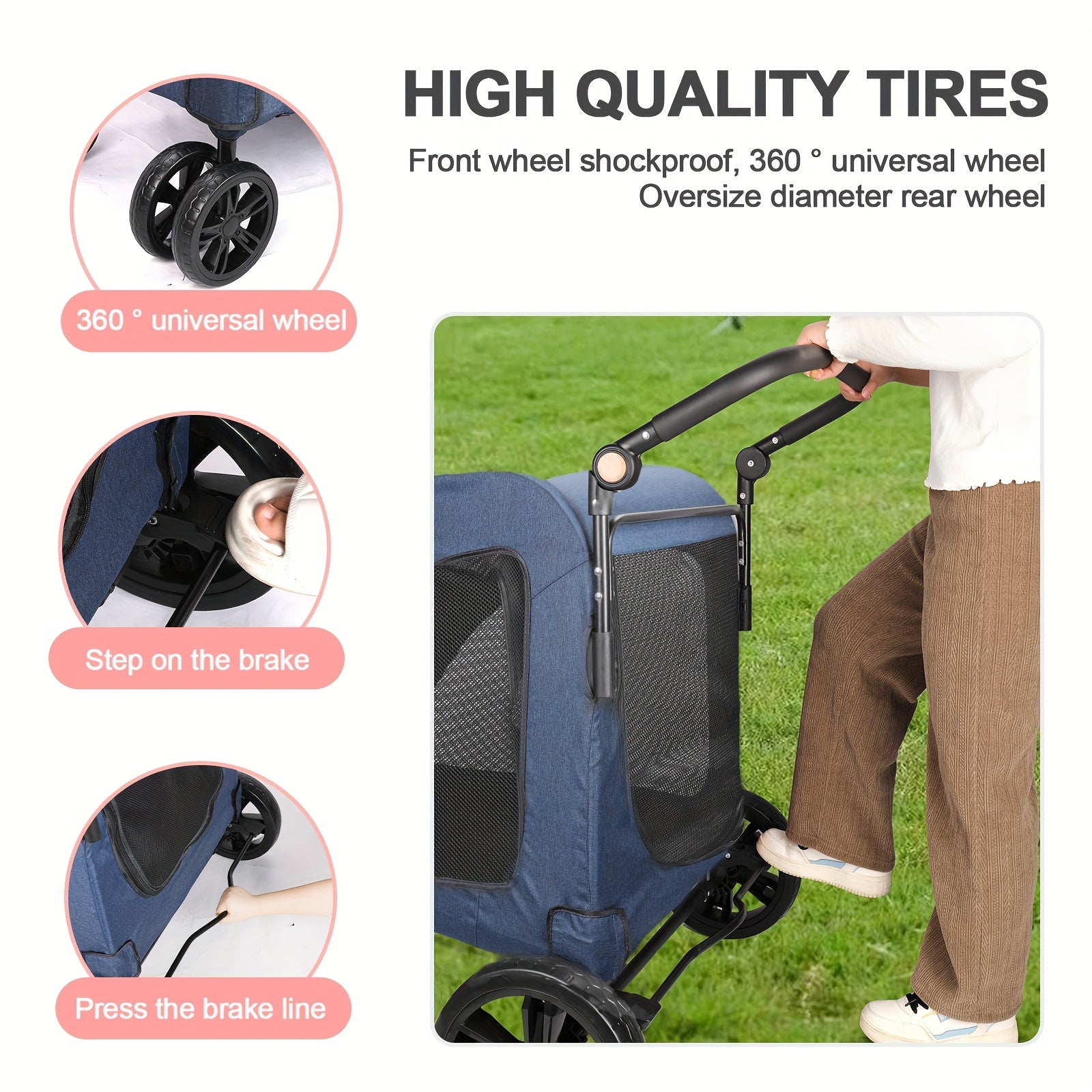 - All-terrain wheels roll smoothly over grass, gravel, sand, and uneven surfaces, maintaining traction and reducing effort so you can focus on your destination and companions.