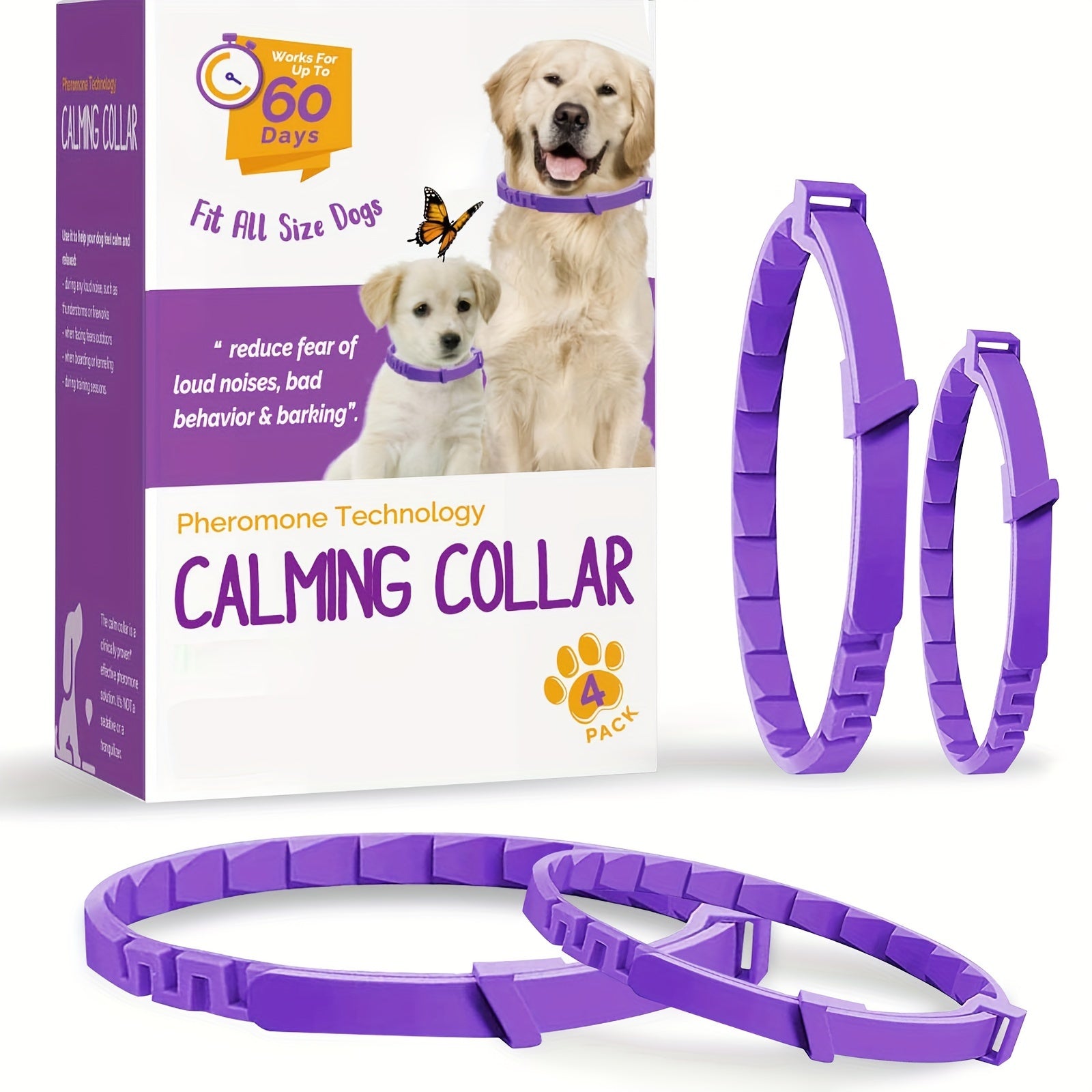 Give your pet the gift of calmness and comfort with the Calming Pheromone Collar For Dogs Adjustable Four Pack Set. These collars are a must-have for any dog owner looking to enhance their pet's well-being. Don't wait—order now and create a stress-free environment for your beloved companion!