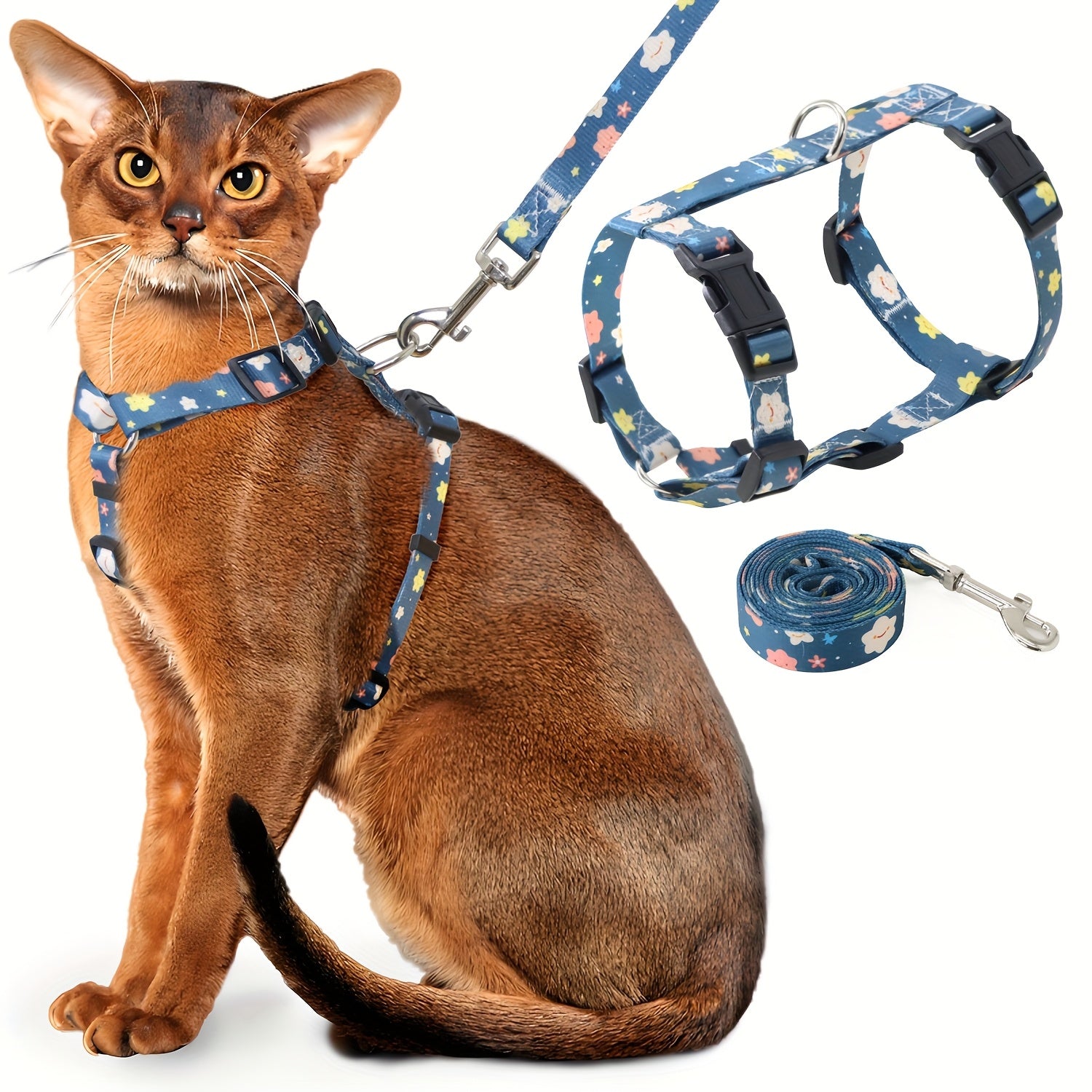 This cat harness and leash set is perfect for pet owners looking to allow their cats some freedom while ensuring their safety. Whether you're heading out for a stroll in the park or a hiking adventure, this set will keep your feline friend secure and happy.