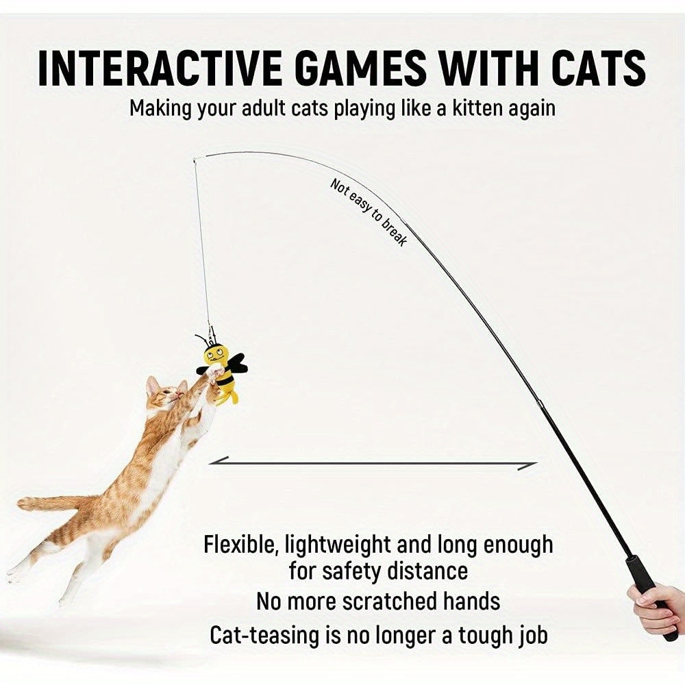 Cat Wand Toy Cat Fishing Pole Retractable Interactive Toy