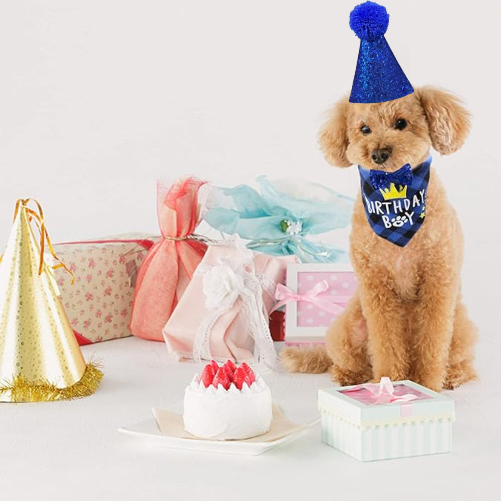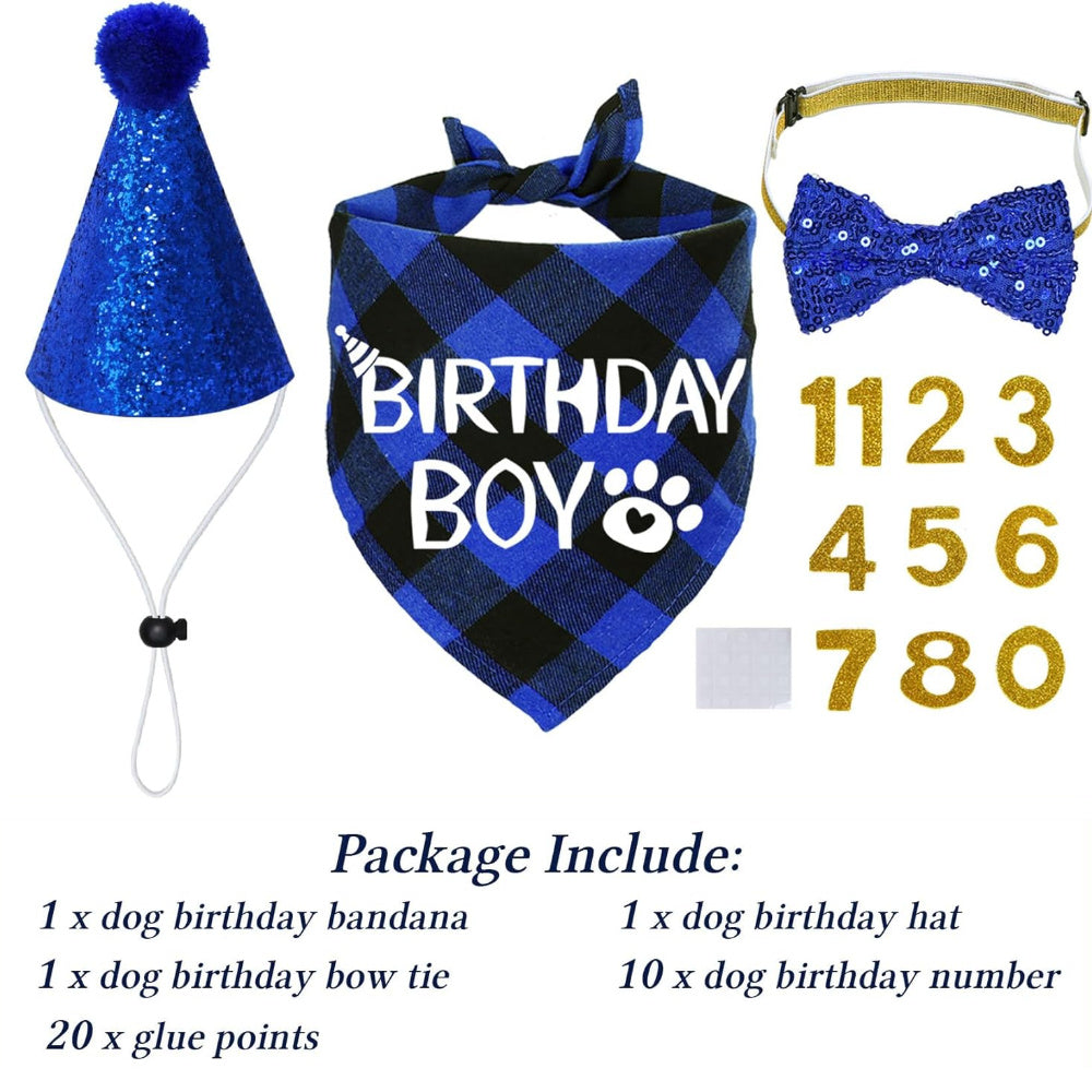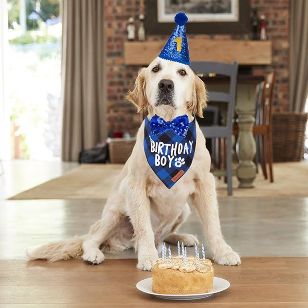 - 1 x Dog Birthday Boy Bandana: Show off your dog's birthday spirit with a stylish bandana that fits comfortably around their neck.