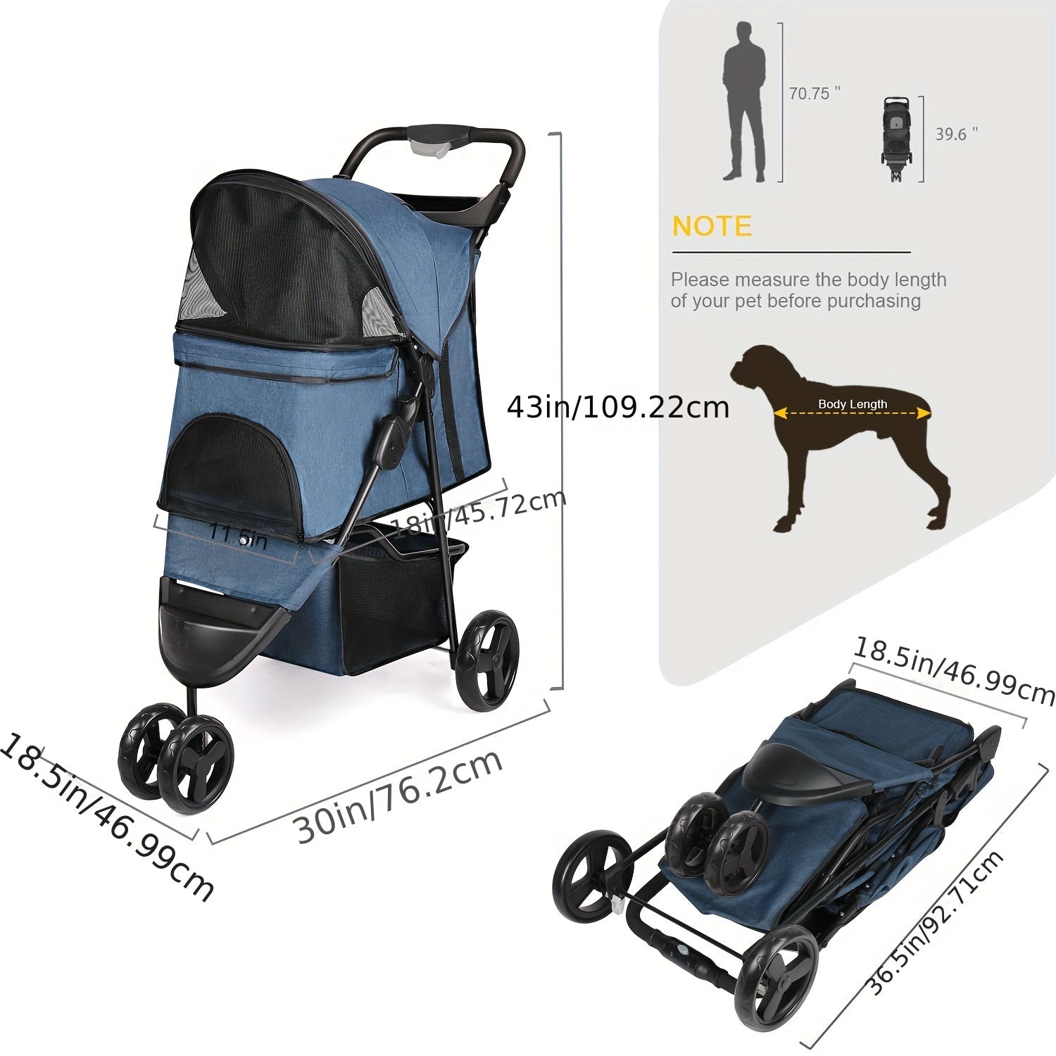 WEDYVKO Dog Stroller For Pets With Alloy Frame Basket