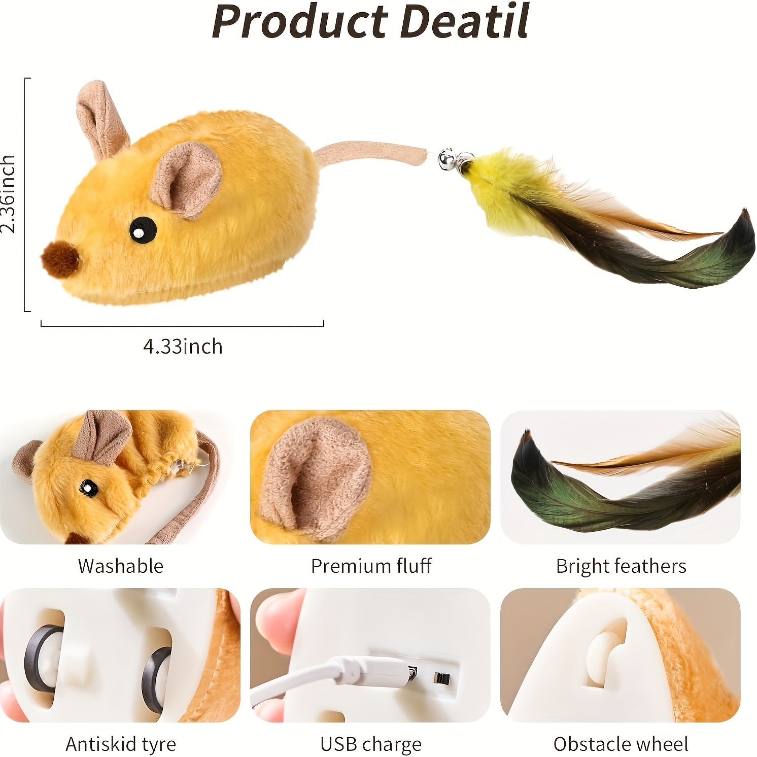 This interactive cat toy not only features a charming feather tail that mimics the movements of real prey but also includes LED lights that captivate your cat's attention, stimulating their natural hunting instincts. As a standout product in the market, it's designed to enhance your pet's agility, coordination, and overall well-being.