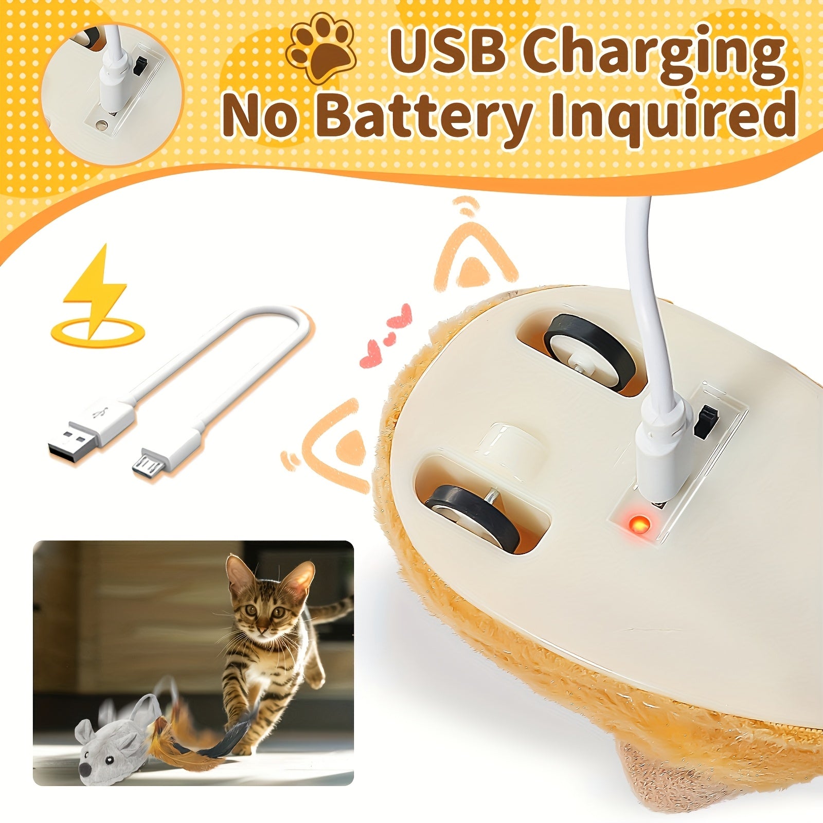 Introduce your feline friend to the Interactive Rechargeable LED Cat Mouse Toy with Feather Tail – a must-have addition to your pet's playtime! Designed for all breed sizes, this innovative toy offers endless entertainment with its captivating features. The plush exterior is not only safe for your cat but also irresistibly soft, making it perfect for gentle paws. The built-in rechargeable lithium battery ensures that the fun never stops, simply charge via USB and let your cat's instincts take over!