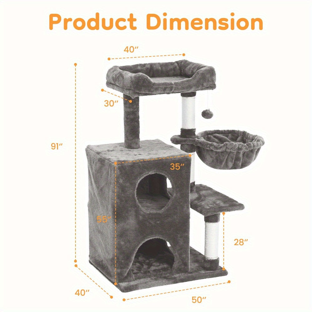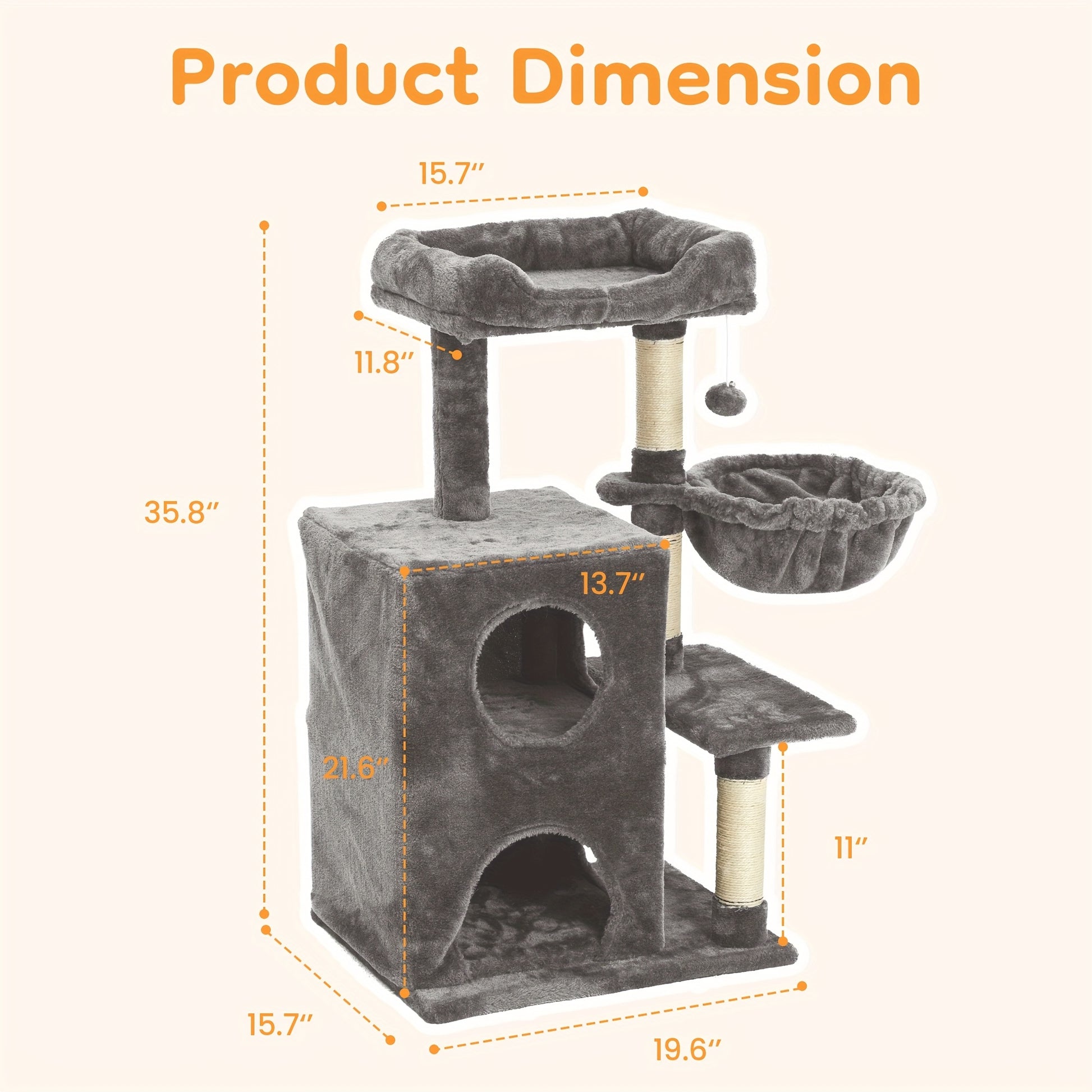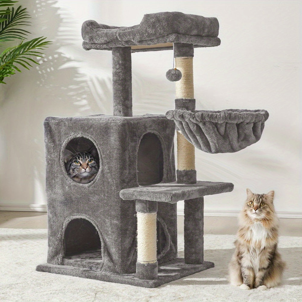 Multi-Level Cat Tower with Scratching Posts and Hammocks