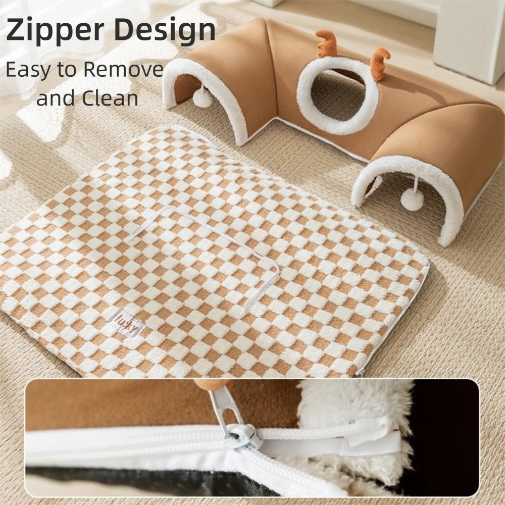 You give your cat a plush escape with this Zhejiang Plush Cat Tunnel Bed Cozy Peekaboo Tube Toy—an inviting hideaway and playful tube all in one.