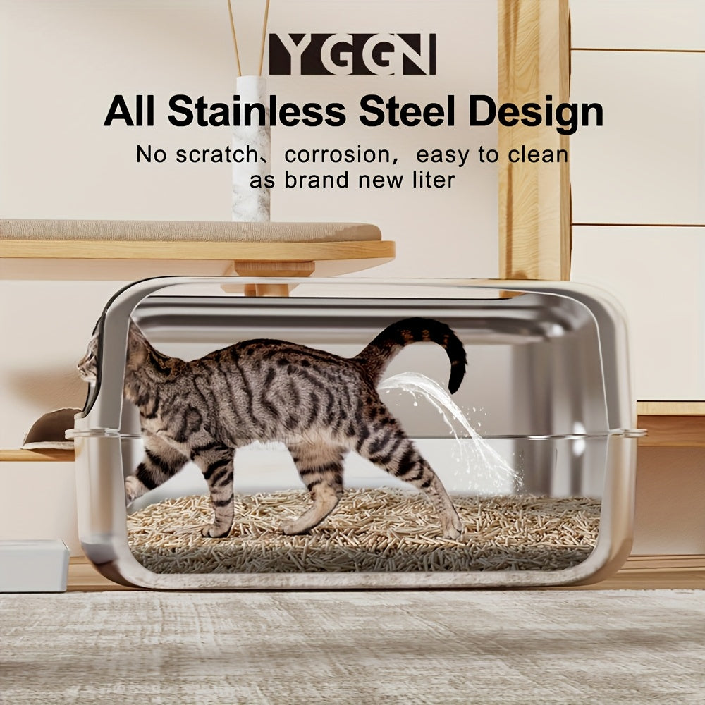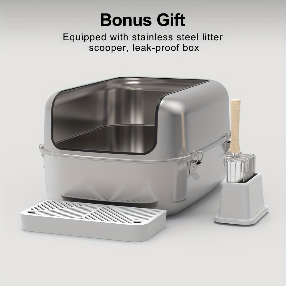 Unlike traditional plastic litter boxes that can scratch and retain odors, our stainless steel cat litter box offers a non-porous surface that resists stains and bacteria growth. This means less time cleaning and more time enjoying your furry companion. Plus, its durable construction means you won't have to worry about wear and tear over time.